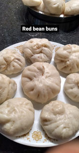 3. Knead dough for a couple minutes then it's ready to fold into buns! Add your filling and fold into any shape you want (see videos below for inspo). We divided our dough into 4-5 balls, rolled each out into a log then cut 2-inch diameter balls which we rolled flat into thin circles. The lap cheong rolls had thicker dough than the red bean paste and we rolled into a log. The red bean paste dough was very thin on the edges, a little thicker in the middle, then a big spoonful of filling was put in the middle. I pulled the edges up to the middle, letting them fold on each other about 10 times then twisted the top to get the swirly bun effect.